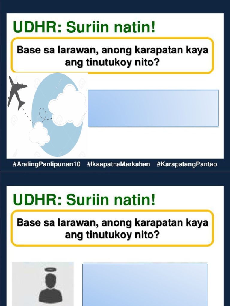 Karapatang Pantao by DepEd Tambayan Ang Self-Learning Module o SLM na ito ay maingat na inihanda para sa ating mag-aaral sa kanilang pag-aaral sa tahanan. Get unlimited access to this and over. Artikulo 10 Ang bawat taoy may karapatan sa ganap na pagkakapantay-pantay sa isang makatarungan at hayag na paglilitis ng isanghukumang malaya at walang kinikilingan sa pagpapasiya ng kanyang mga karapatan at panangutan at sa ano mangparatang na kriminal laban sa kanya.