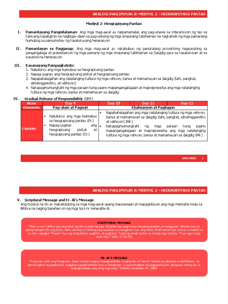 Heograpiya ng Daigdig at Heograpiyang Pantao. Angparaan ng interaksyon ng tao sa kanyangkapaligiran. Mailalarawan ang katangian ng lahi sa daigdig.