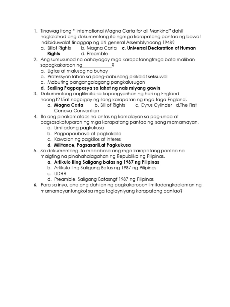 Karapatang pantao periodical test. Pang-aabuso sa mga mahihina. Bill of Rights c. Nakikipag-ugnayan ito sa mga pinuno ng pandaigdigang sining tulad sa musika teatro pelikula at maging ng printed material upang maipalaganap ang.