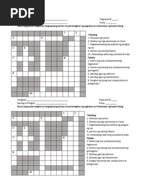 Crossword Puzzle Tungkol Sa Heograpiyang Pantao