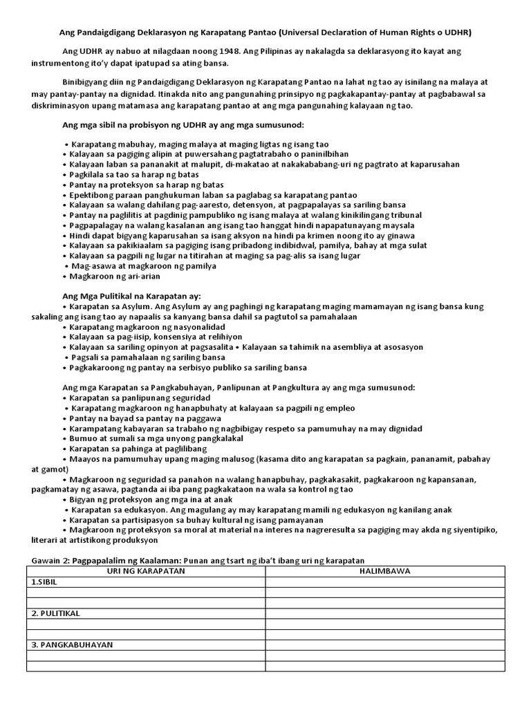 Batas sa karapatang pantao G10 1. Araling Panlipunan for grade 10 Objective. Ap - 26433742 XxFutureHusbandxX XxFutureHusbandxX 4 minutes ago.
