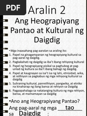 Heograpiyang Pantao Ito ay mas nakatuon sa pagsuri sa distribusyon at sa ugnayan ng mga tao at kultura sa daigdig. My school My Profile Page Edit personal details Language and Location Log Out.