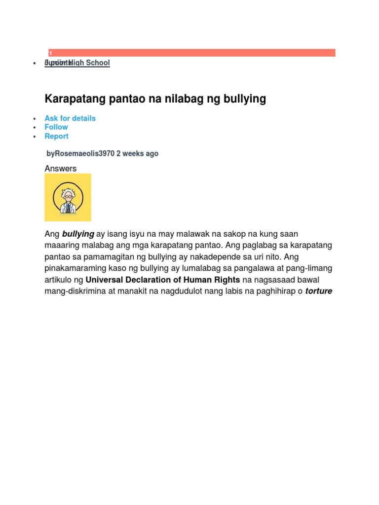 Start studying KARAPATANG PANTAO Mga Legal na Sanggunian sa mga Karapatang Pantao. Karapatang magpahinga at maglibang. The Philippine Bill of Rights is in Article III of the 1987 Constitution.