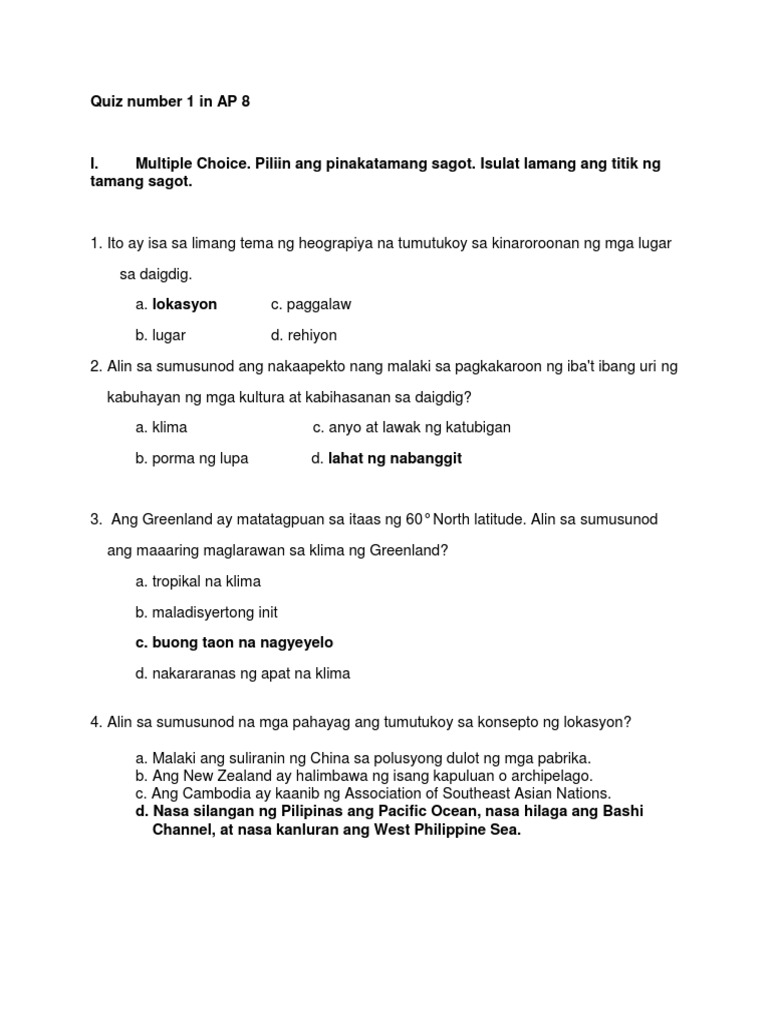Sample quiz heograpiyang pantao. Ano ang tawag sa paniniwala na iisang Diyos lamang. Tinatawag ring Kultural na Heograpiya. Question 1 30 seconds Q.