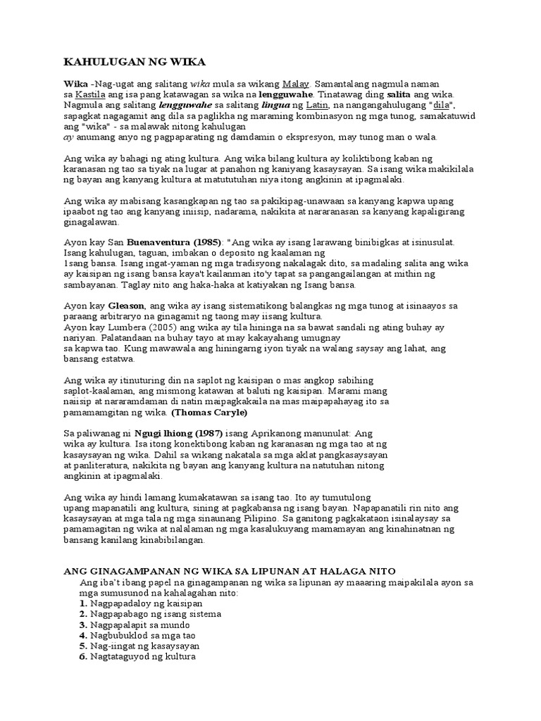 Ano Ba Ang Wika Docx Ano Ba Ang Wika Ang Wika Ay Isang Kalipunan Ng Mga Salita At Mga Pamamaraan Ng Pagsasama Sama Ng Mga Ito Para Magkaunawan Or Course Hero